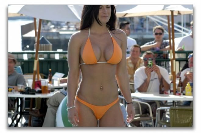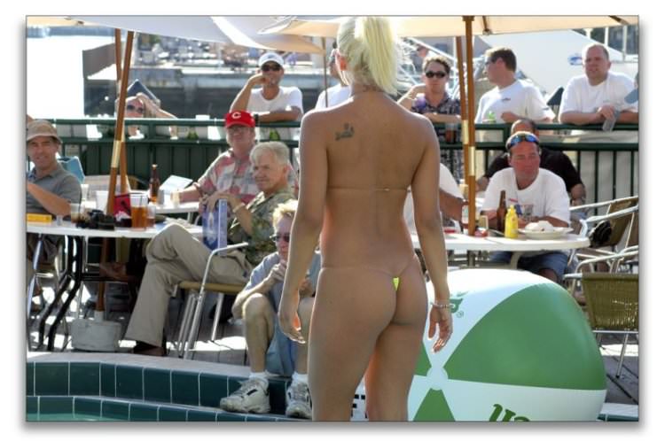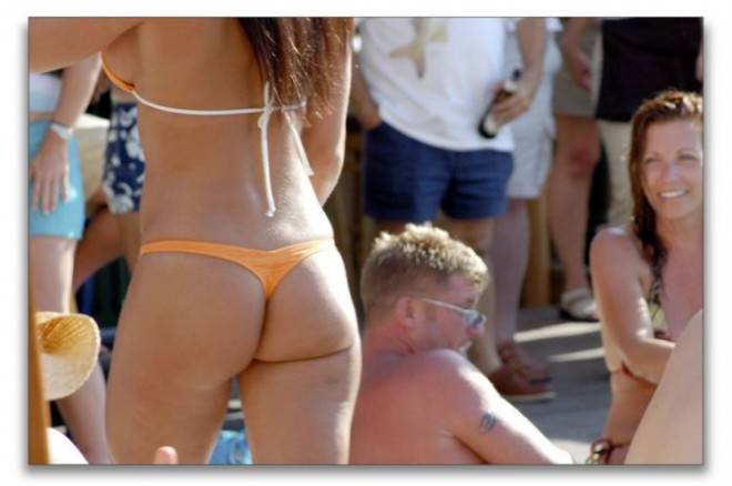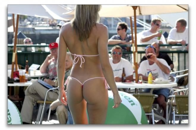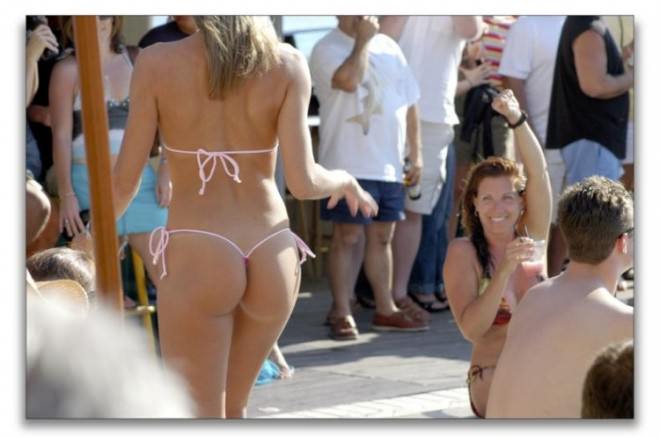 Если вы думаете что знаете что из себя представляют мини бикини и экстримальные купальники, то вы сильно ошибаетесь. Девушки на этих фото устроили показ пляжной моды и одели на себя мини бикини таких маленьких размеров, кажется что они сейчас исчезнут внутри этих больших попок и спрячутся между половыми губками. Думаю на наших Российских пляжах ни одна красивая девушка не осмелилась бы надеть на себя такой откровенный купальник и узкие трусики. Но эти девушки не парятся по такому поводу, поэтому сейчас мы имеем классную подборку фото сексуальных телочек в мини бикини.